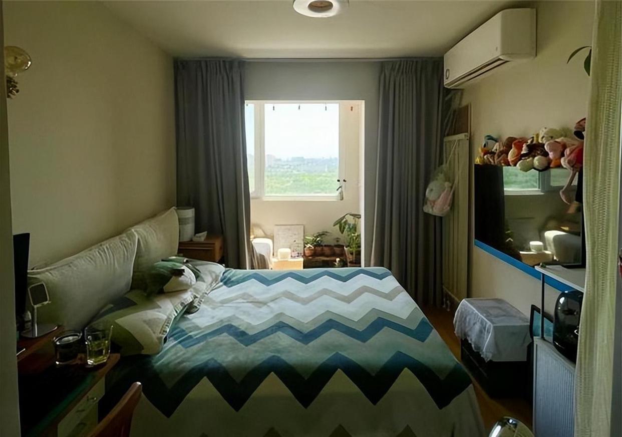 卧室是家里光线最好的地方,对面就是阳台,中间是一扇玻璃推拉门,配了灰色的窗帘。