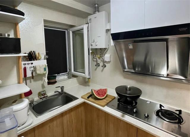 厨房在餐厅的右边,面积很小,但她还是做了隔断,装了一扇可以向内平开的小窗户。